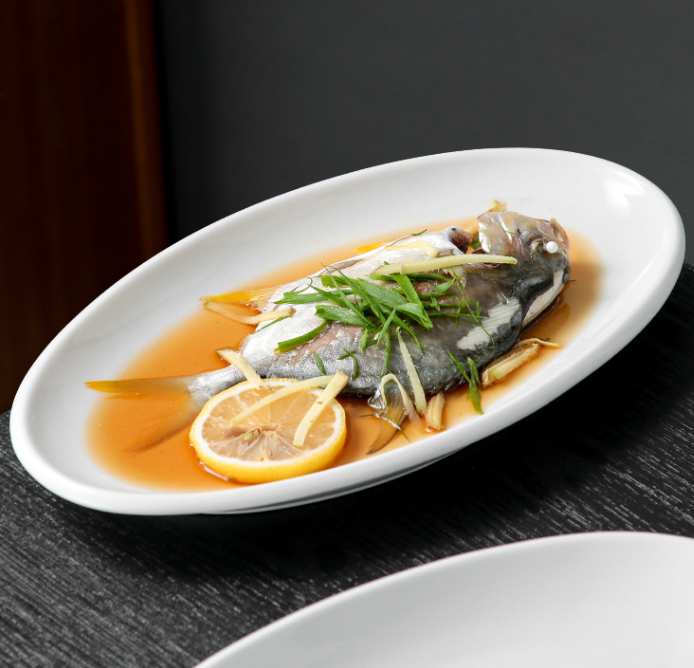 จานใส่อาหารตะวันตกทรงวงรีทรงใหญ่สีขาวแบบเรียบง่ายจานใหญ่ทรงตะวันตกจานลึกหมวกฟางทรงตะวันตกชามอาหารคุณภาพสูง