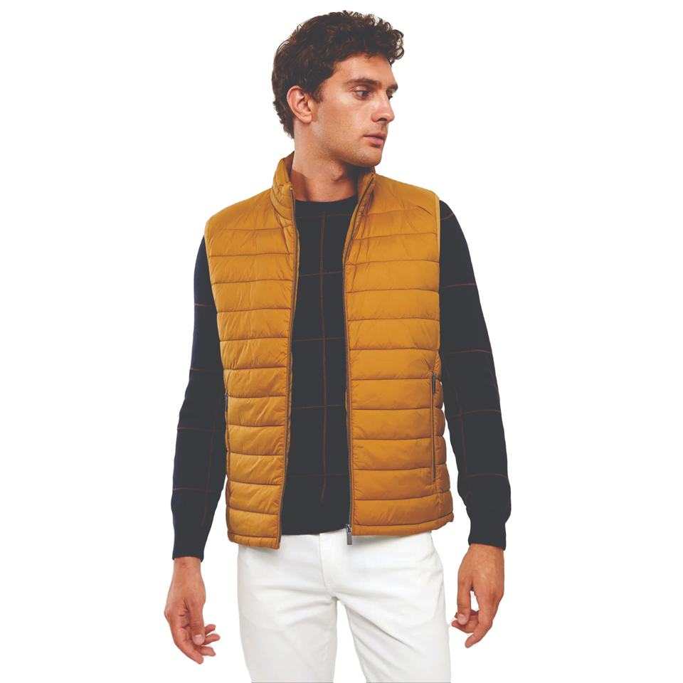 เสื้อกั๊กพัฟเฟอร์ผู้ชายคุณภาพสูงแบบไม่มีแขนสำหรับฤดูหนาว ป้องกันรอยยับ ระบายอากาศได้ดี สีและขนาดปรับแต่งได้