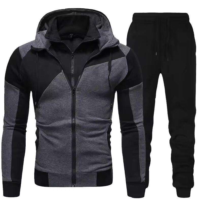 ชุดกีฬาฤดูหนาวผู้ชายทรงเข้ารูปคุณภาพสูง สไตล์ลำลองสุดเท่ ระบายอากาศได้ดี ผลิตจากผ้าถักผสมสแปนเด็กซ์/ผ้าฝ้าย/ใยไผ่ เหมาะสำหรับการวิ่งจ๊อกกิ้ง