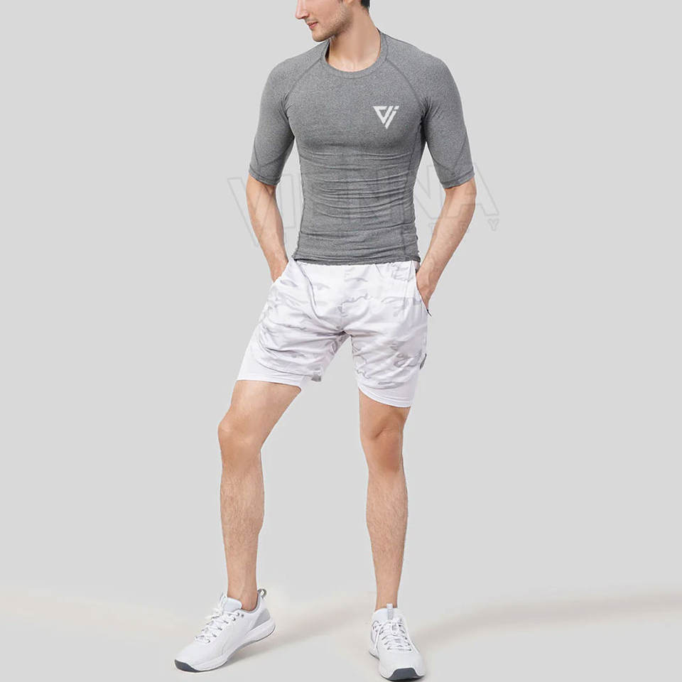 เสื้อยืดผู้ชายคุณภาพสูงทรงเข้ารูป ผลิตจากผ้าโพลีเอสเตอร์ผสมฝ้าย สีขาว เสื้อยืดผู้ชายแบบรัดรูป