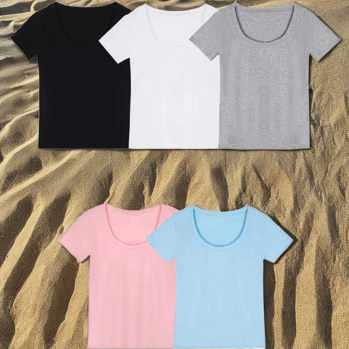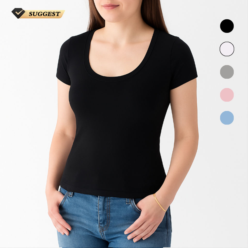 เสื้อยืดคอกลมทรงสลิมฟิตคุณภาพสูงสำหรับผู้หญิงผ้าคอตต้อนลำลอง/เยื่อไม้ไผ่แห้งเร็วออกแบบโลโก้ได้ตามต้องการ