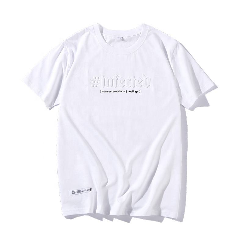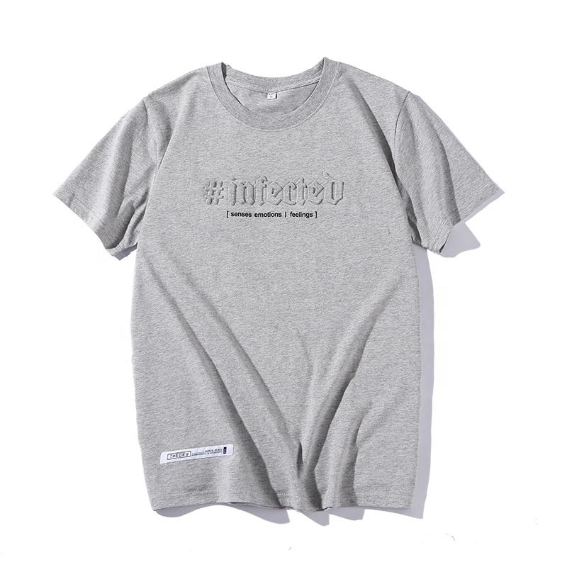 คุณภาพสูงขนาดเล็ก MOQ Comfort Tee ปรับแต่งรูปแบบสีเทา Mens เสื้อยืด3D Embossed Tee 100 Cotton T เสื้อลูกเรือคอ tee
