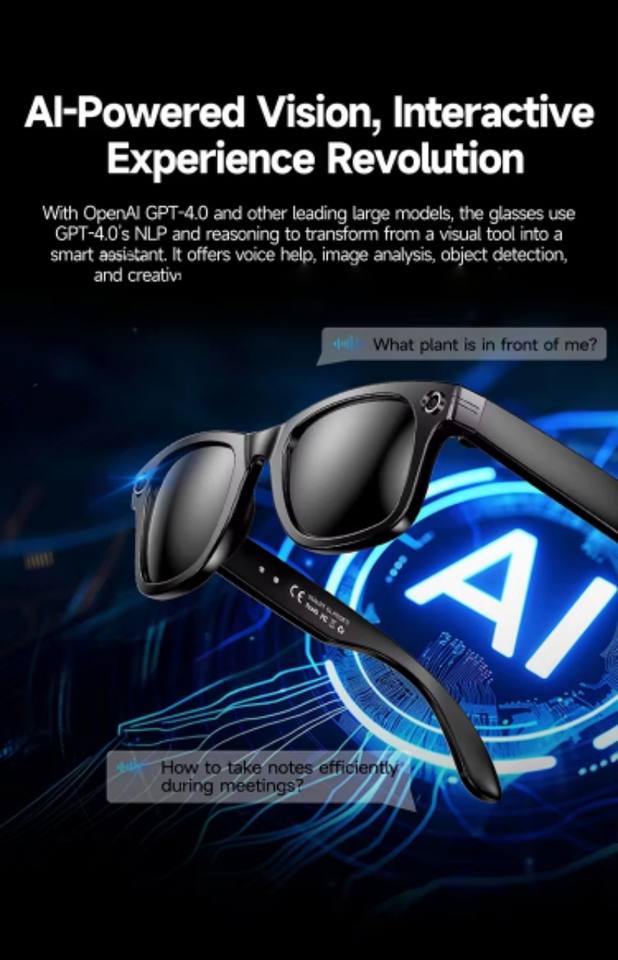 แว่นตาอัจฉริยะคุณภาพสูง รองรับการฟังเพลง โทรออก บันทึกวิดีโอความละเอียด 800W พิกเซล แปลภาษาได้ กันน้ำระดับ IP65 แว่นตาสวมใส่ได้