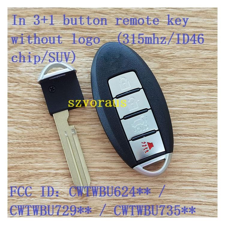 กุญแจรีโมทรถยนต์อัจฉริยะคุณภาพสูง CWTWBU624 กุญแจรีโมท 4 ปุ่ม 315MHz สำหรับนิสสัน สำหรับอินฟินิตี้ ชิป ID46 ไม่มีโลโก้