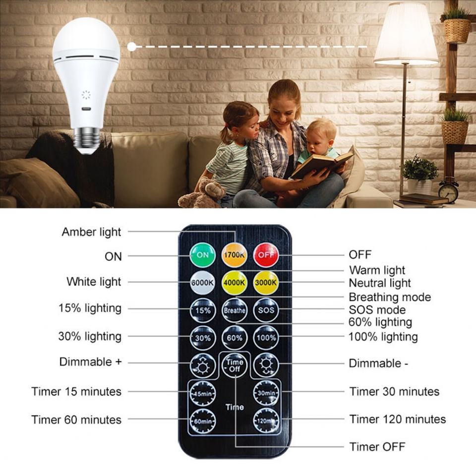 ชื่อสินค้า:หลอดไฟ LED แบบชาร์จไฟได้ 3CCT ควบคุมระยะไกล