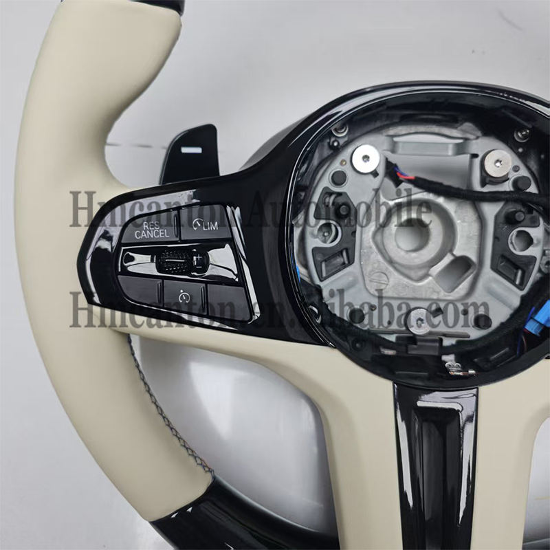 พวงมาลัยรถยนต์ลายเปียโนสีดำหนังเรียบสำหรับ BMW G01 G20 G30 3 Series 5 Series
