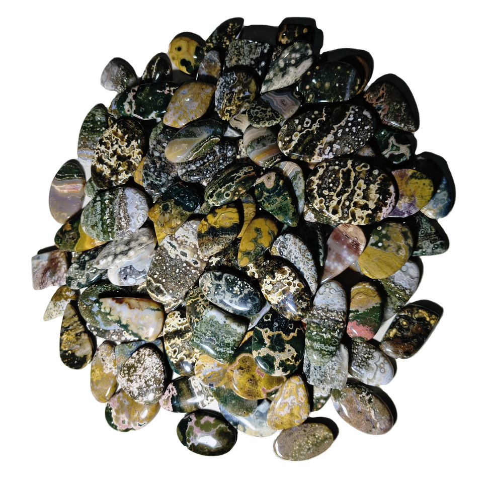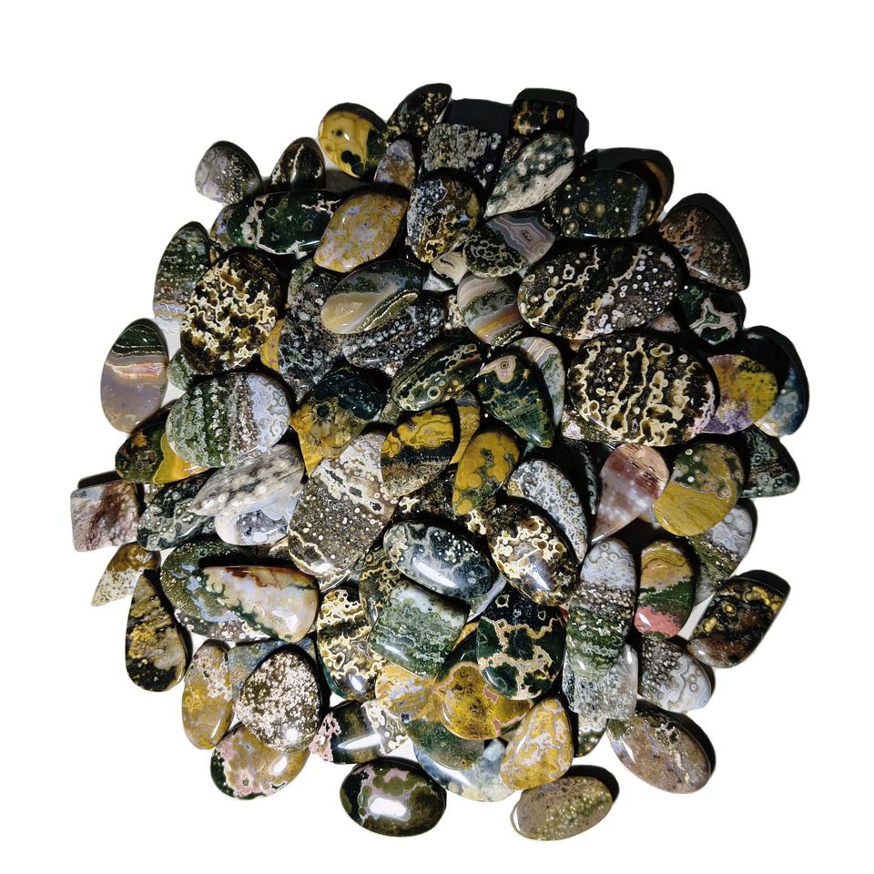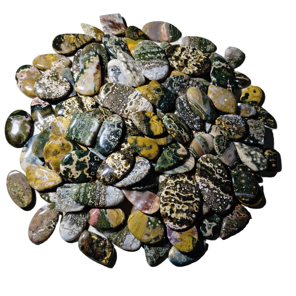 คริสตัลแจสเปอร์ทะเลธรรมชาติคุณภาพสูง เรียบเนียน รูปทรงผสมผสาน คาโบชอง พลอยหลวม ขนาด 20-45 มม. น้ำหนัก 8-12 กรัม หินคูชิ เจมส์ สโตน