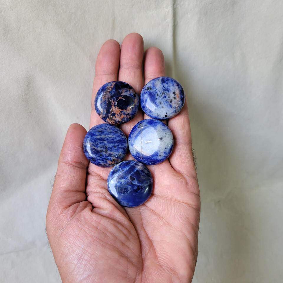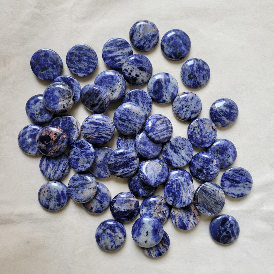 โซดาไลต์คุณภาพสูง หินธรรมชาติ คริสตัลรูปทรงเหรียญแบน แกะสลักลวดลายรูปหัวใจ ขัดเงาอย่างดี สีฟ้าอ่อน สำหรับทำเครื่องประดับ