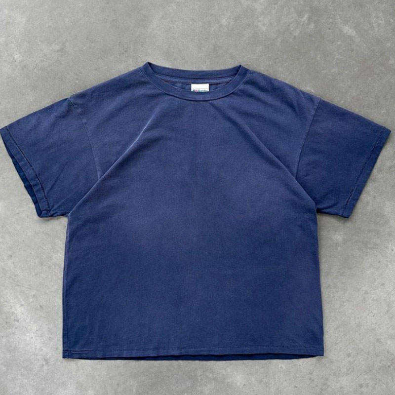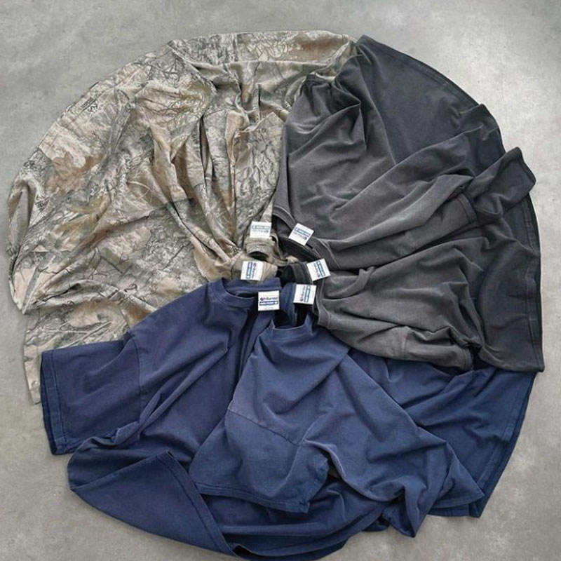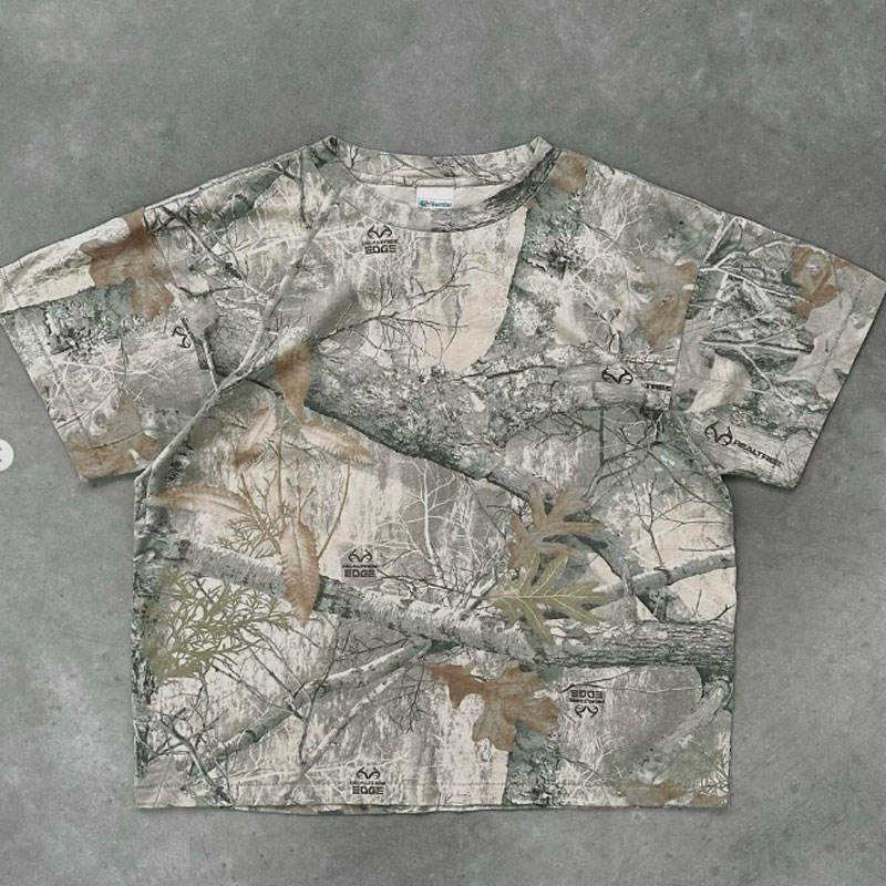 เสื้อยืดผ้าฝ้ายคอมบ็อกซี่โอเวอร์ไซส์ลายพรางพิมพ์ดิจิตอลลายพาดไหล่ตกพิมพ์ลายพรางสีพื้น