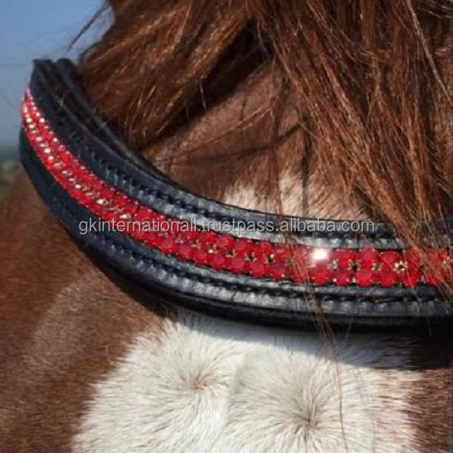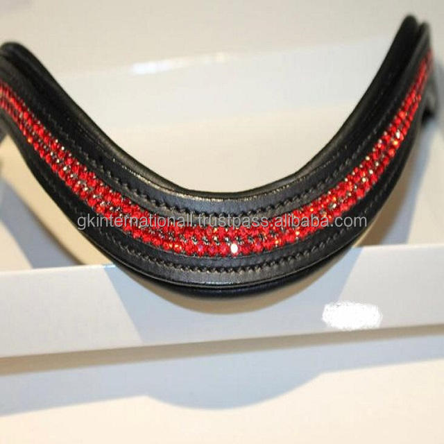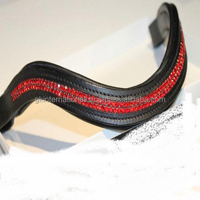 ที่คาดผมสีดำหนังนิ่มคุณภาพสูงสายรัดคิ้วม้าคลื่นลึกพร้อมคริสตัลใสสีแดง2แถวแถบคิ้วพลอยเทียมระยิบระยับ