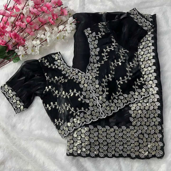 ชุดส่าหรีผ้าไหมเนื้อนุ่มสำหรับผู้หญิงเสื้อเบลาส์แฟนซีงานปาร์ตี้งานแต่งงานมีสไตล์