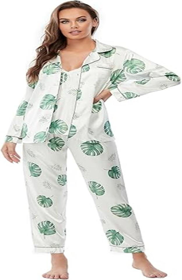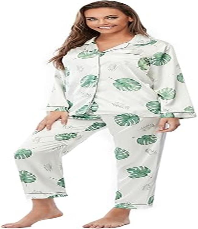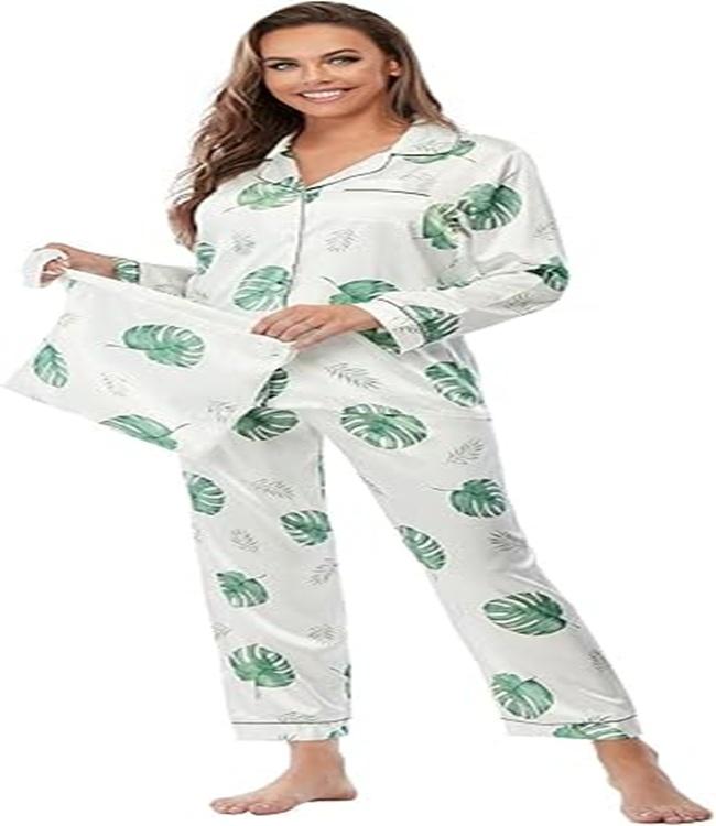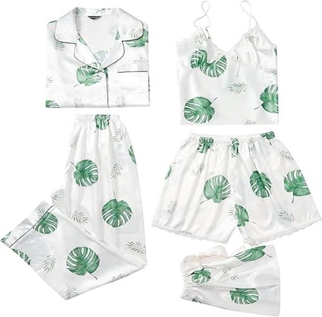 ชุดนอนผ้าซาตินไหมพิมพ์ลายคุณภาพสูง เนื้อนุ่ม น้ำหนักเบา สวมใส่สบาย ทรงคลาสสิก สีตามสั่ง ชุด 4 ชิ้น สำหรับผู้หญิง