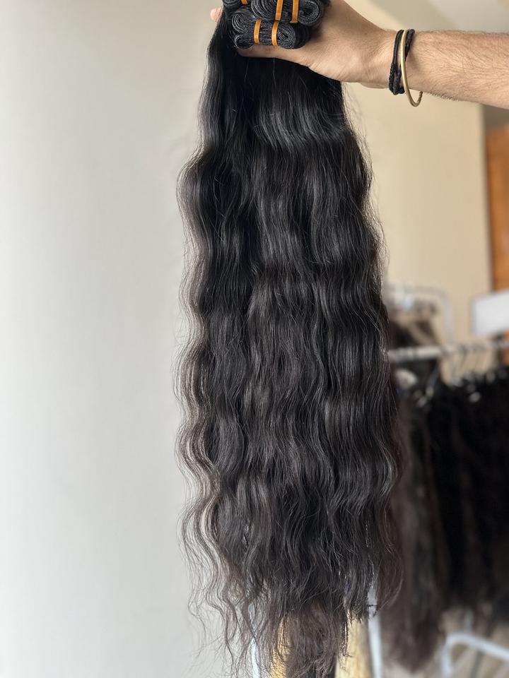 ผมหยักศกแบบลอนสำหรับต่อผมบริสุทธิ์จากธรรมชาติผมลอนคลื่นลึกผมแท้จากผู้บริจาคผมแท้จากอินเดีย
