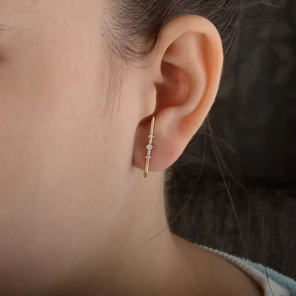 คุณภาพสูง 14K สีเหลืองทองแท้ SI ความชัดเจน G H สีเพชรโมเดิร์นต่างหูสตั๊ดเครื่องประดับทําด้วยมือขายส่ง
