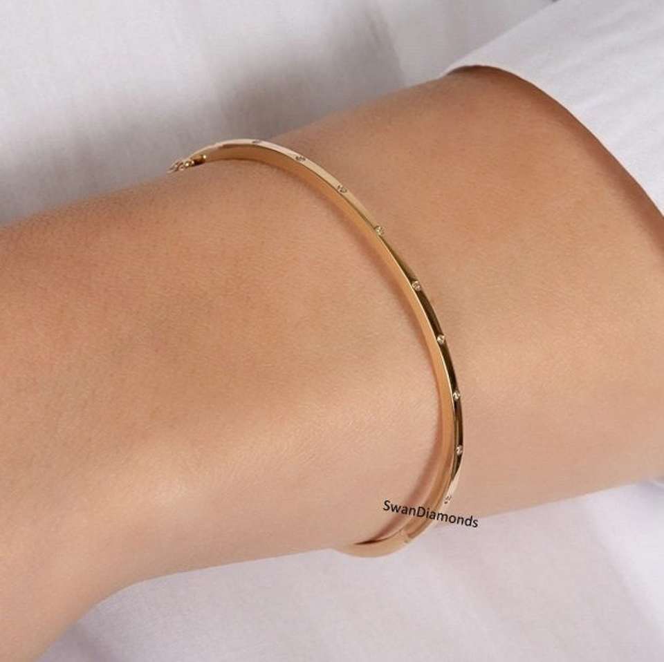 กำไลข้อมือทองคำแท้ 14K คุณภาพสูง ประดับเพชรเลี้ยงในห้องปฏิบัติการแบบฝังเรียบ ดีไซน์สวยงาม เหมาะสำหรับผู้หญิง