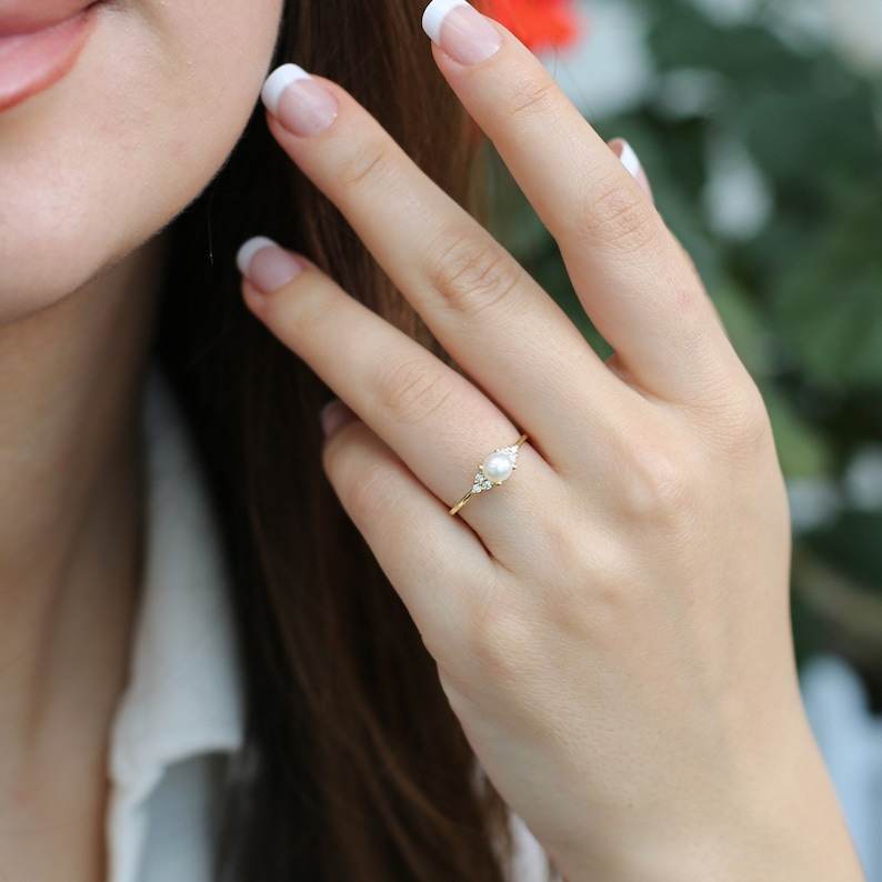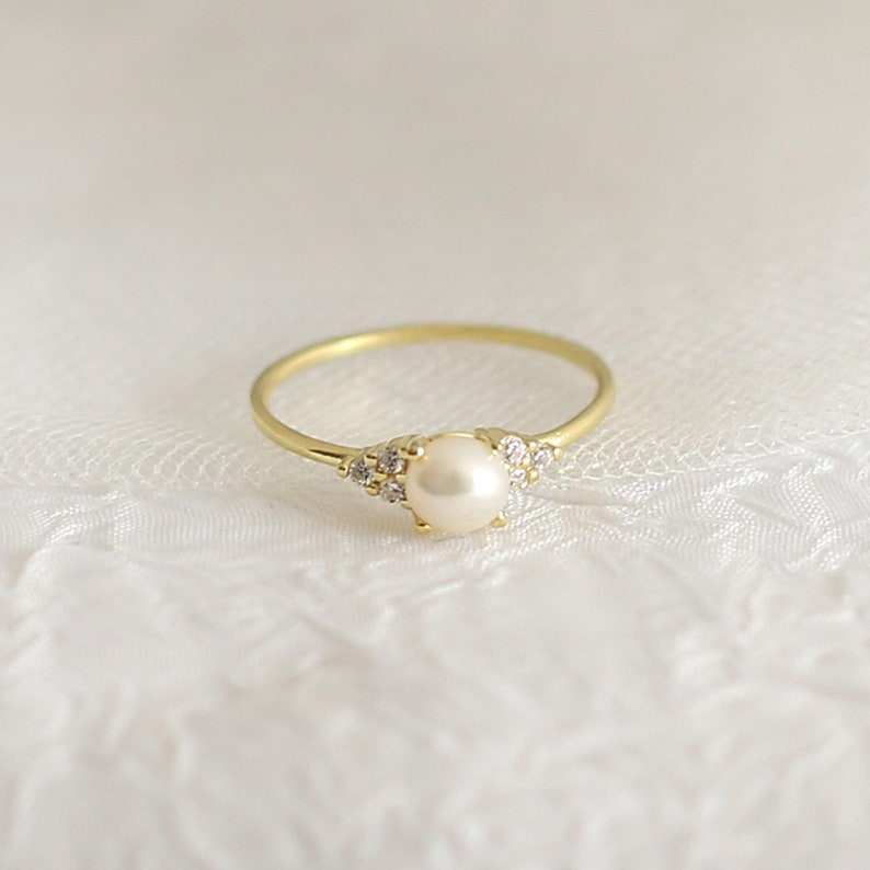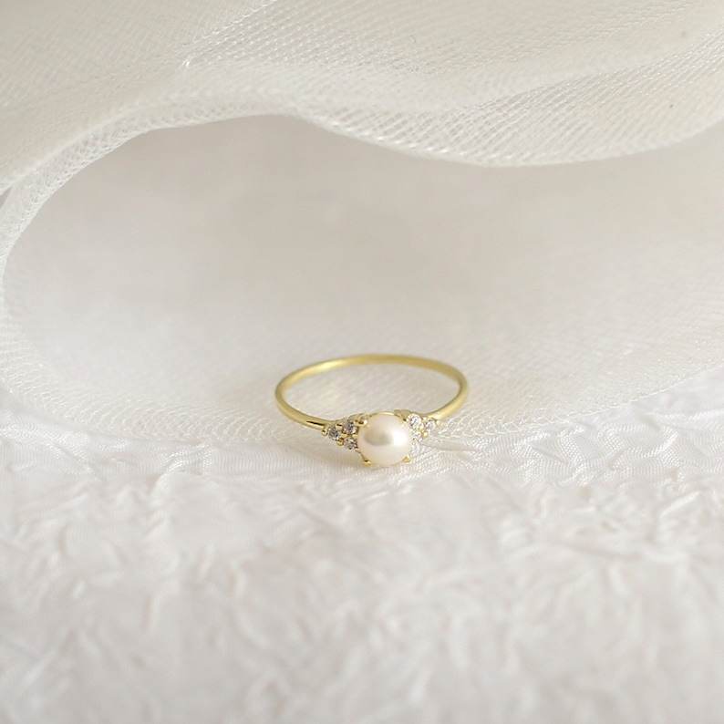 แหวนเงินแท้ 925 ชุบทอง 14K ประดับมุกทรงกลม ดีไซน์เรียบหรู งานแฮนด์เมดคุณภาพสูงสำหรับผู้หญิง