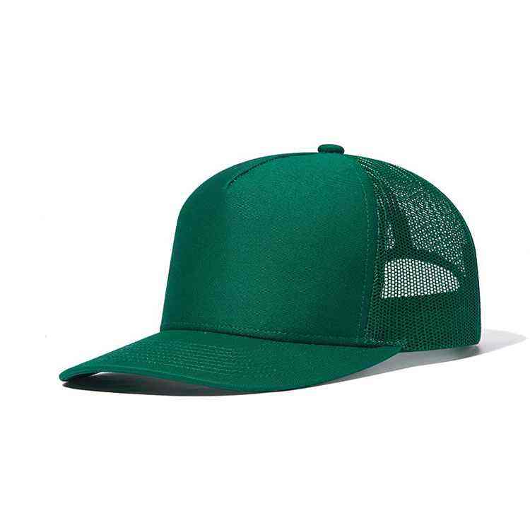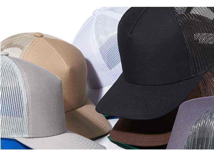 หมวกกันแดดคุณภาพสูง สีพื้น 100% โพลีเอสเตอร์ สำหรับกิจกรรมกลางแจ้ง ปีกโค้งเล็กน้อย 5 แผง ลายตัวอักษร ด้านหลังเป็นตาข่ายแบบ Snapback