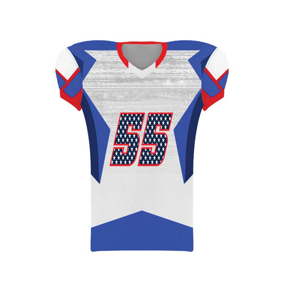ชุดเครื่องแบบอเมริกันฟุตบอลผ้าโพลีเอสเตอร์ชุดเครื่องแบบทีมอเมริกันฟุตบอลสีพื้น100%