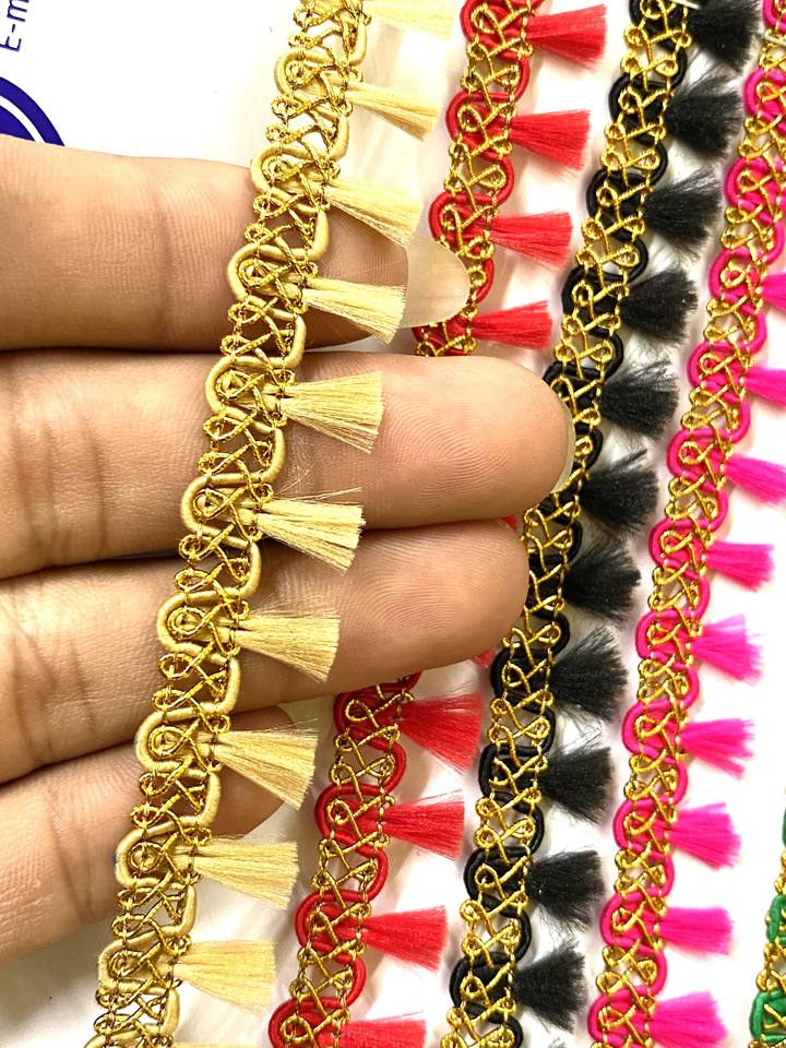 พู่ห้อยสีพื้นคุณภาพสูง สำหรับตกแต่ง DIY อุปกรณ์ตกแต่งเสื้อผ้า ของใช้ในบ้าน ขนาดสั่งทำได้ ผลิตในอินเดีย ไม่มีขนแปรง