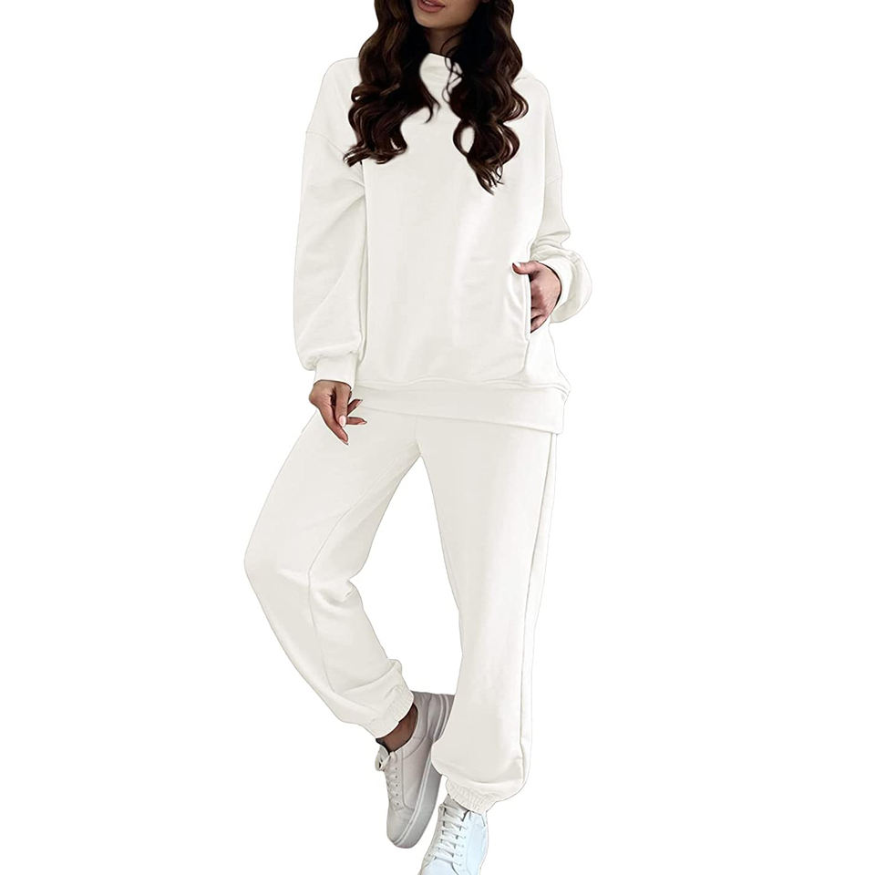 ชุดวอร์มผ้าฟลีซสีล้วนสำหรับผู้หญิงชุดสวมหัวโลโก้วิ่งจ๊อกกิ้งลำลองใหม่