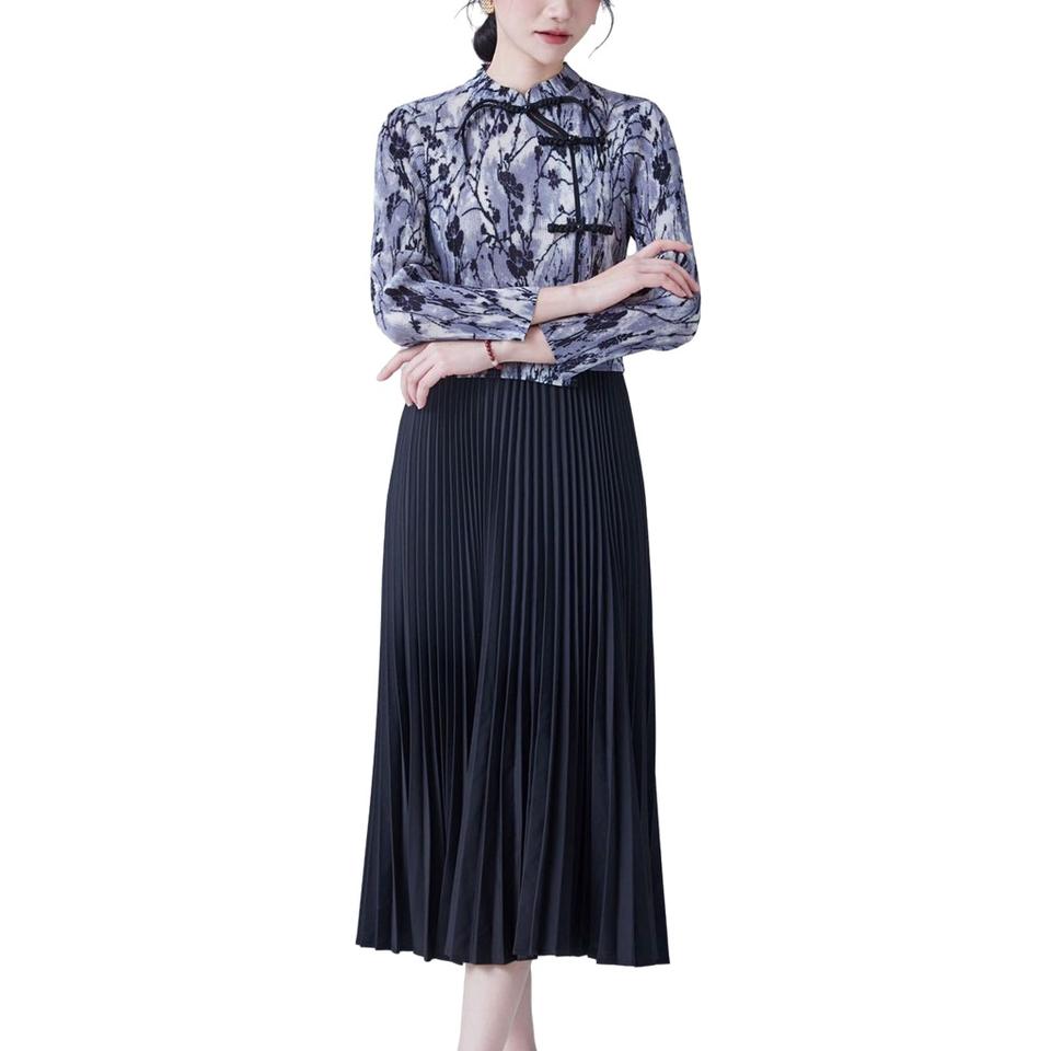 High Quality Solid Natural Pleated Midi Dress Women's Spring Summer New Vintage Eco-Friendly Long Sleeve Custom