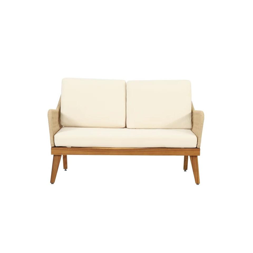 ชุดโซฟาในสวนตกแต่งด้วยเชือกโต๊ะกาแฟทำจากไม้สักเนื้อแข็งสำหรับห้องนั่งเล่นหรือโรงแรม