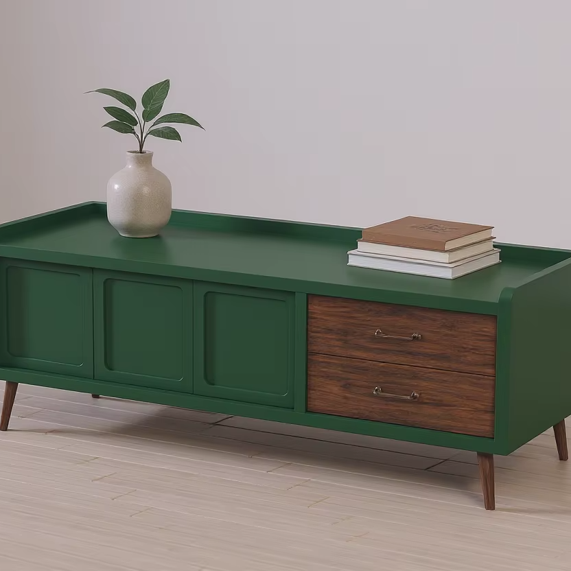 ไม้สักแข็งคุณภาพสูง & MDF ดีไซน์เรียบง่ายทันสมัยศูนย์บันเทิงสำหรับห้องนั่งเล่นอพาร์ทเม้นเฟอร์นิเจอร์