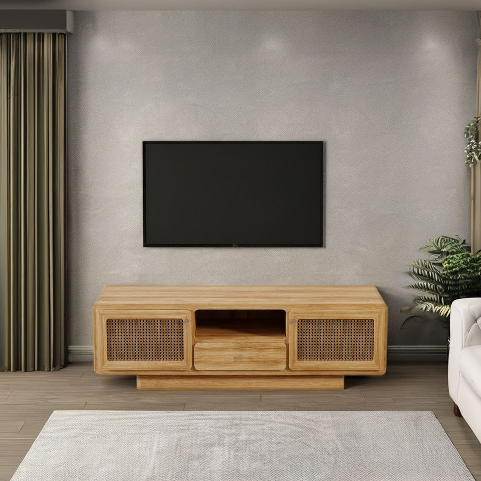 แท่นวางทีวีสำหรับบ้านห้องนั่งเล่นโรงแรมและอพาร์ตเมนต์ทำจากไม้สักเนื้อแข็งดีไซน์ทันสมัย