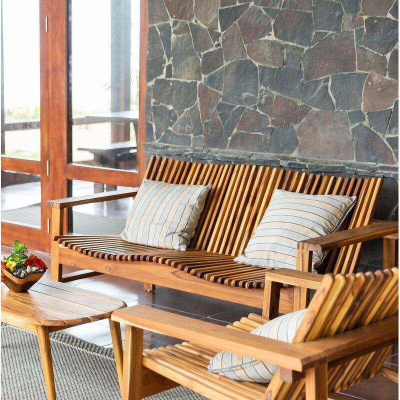ชุดโซฟากลางแจ้งไม้สักแท้คุณภาพสูง ดีไซน์เรียบง่าย พร้อมที่นั่งแบบระแนง สำหรับลานบ้าน รีสอร์ท และระเบียงหรู