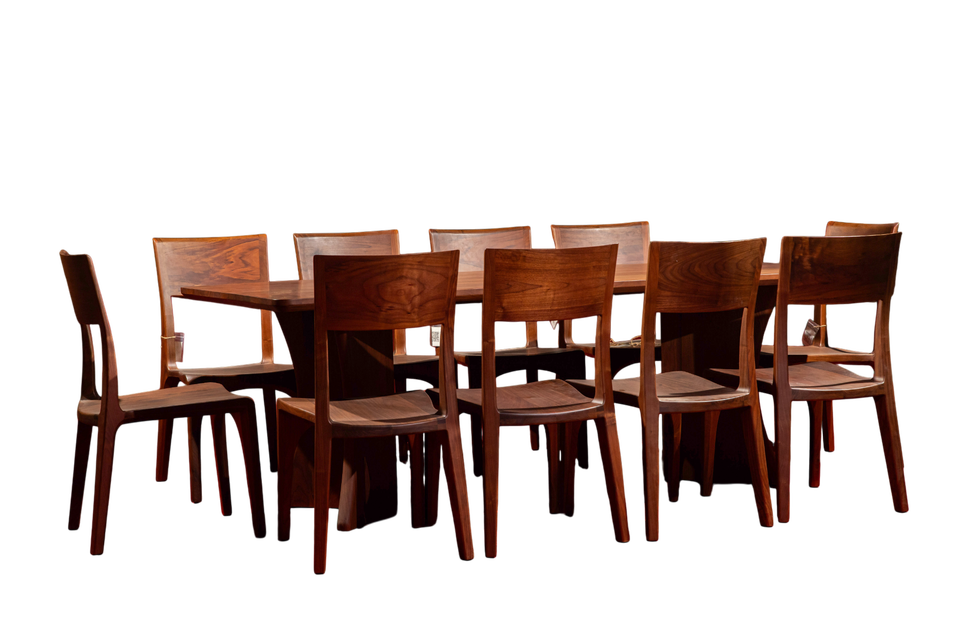 ชุดโต๊ะอาหารทำจากไม้วอลนัทเนื้อแข็งสำหรับ10คนชุดรับประทานอาหารทรงสี่เหลี่ยมทันสมัยตกแต่งด้วยวัสดุ PU