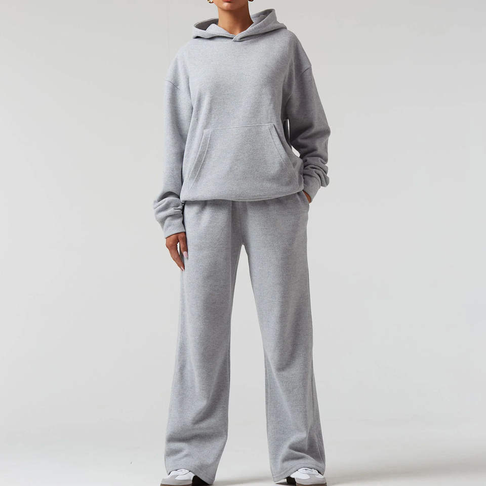 ชุดวอร์มสตรีคุณภาพสูงสำหรับฤดูหนาว สไตล์สตรีทแวร์ รับสกรีนโลโก้ ระบายอากาศได้ดี น้ำหนักเบา ผ้าฟลีซ 2 ชิ้น