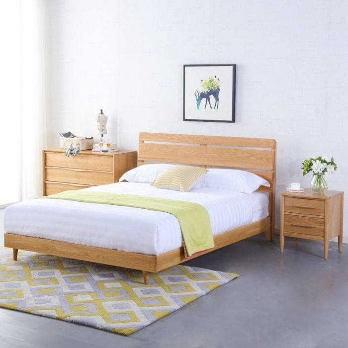 High Quality Solid Wood Modern King & Queen Size Bed Frame with Wooden Slats Bedroom Set