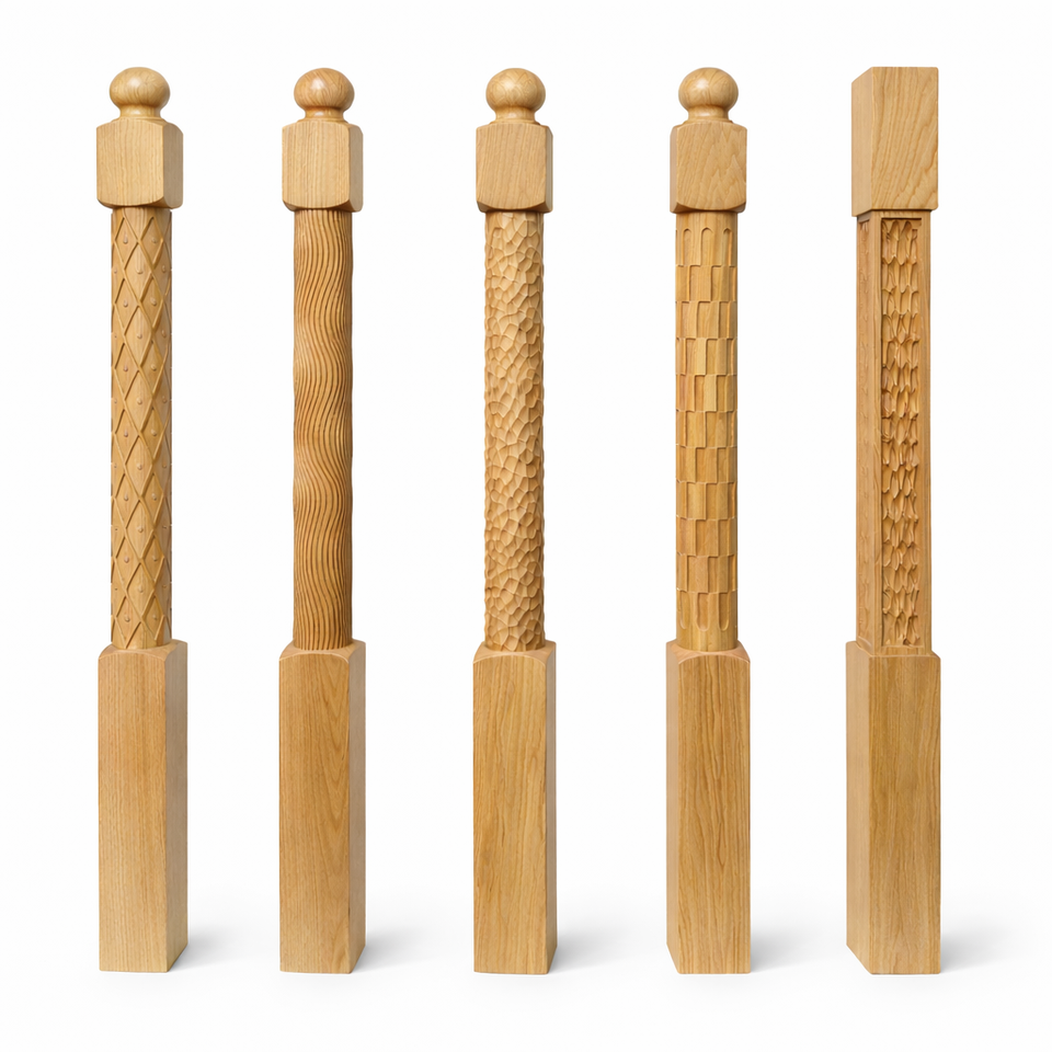 เสาบันไดไม้ป็อปลาร์คุณภาพสูง ดีไซน์ทันสมัย สำหรับตกแต่งภายในบ้านหรูหรา พร้อมอุปกรณ์ตกแต่งบันได