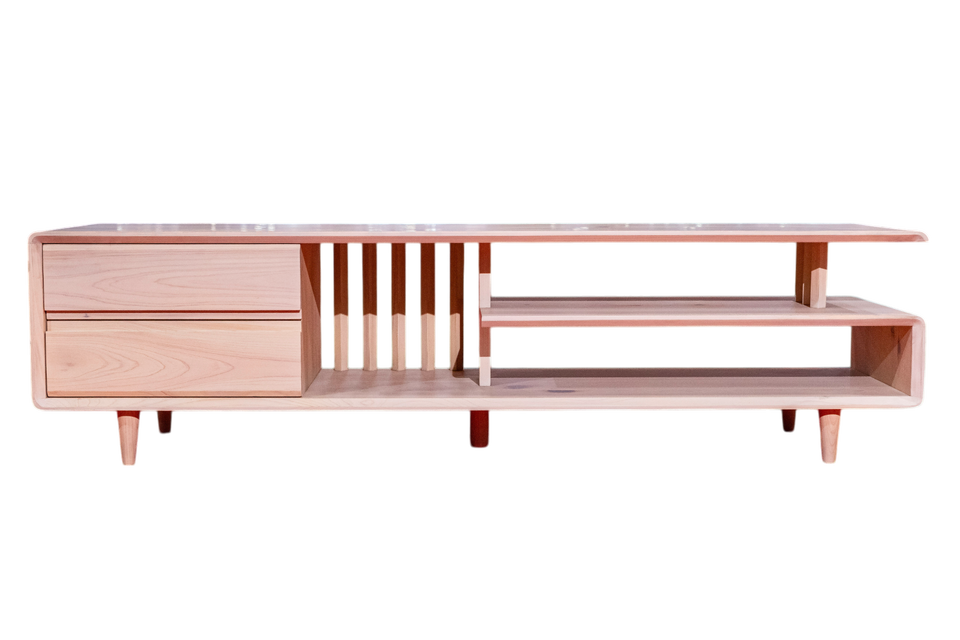 ตู้คอนโซลสื่อไม้โอ๊คธรรมชาติขาตั้งทีวีไม้เนื้อแข็ง