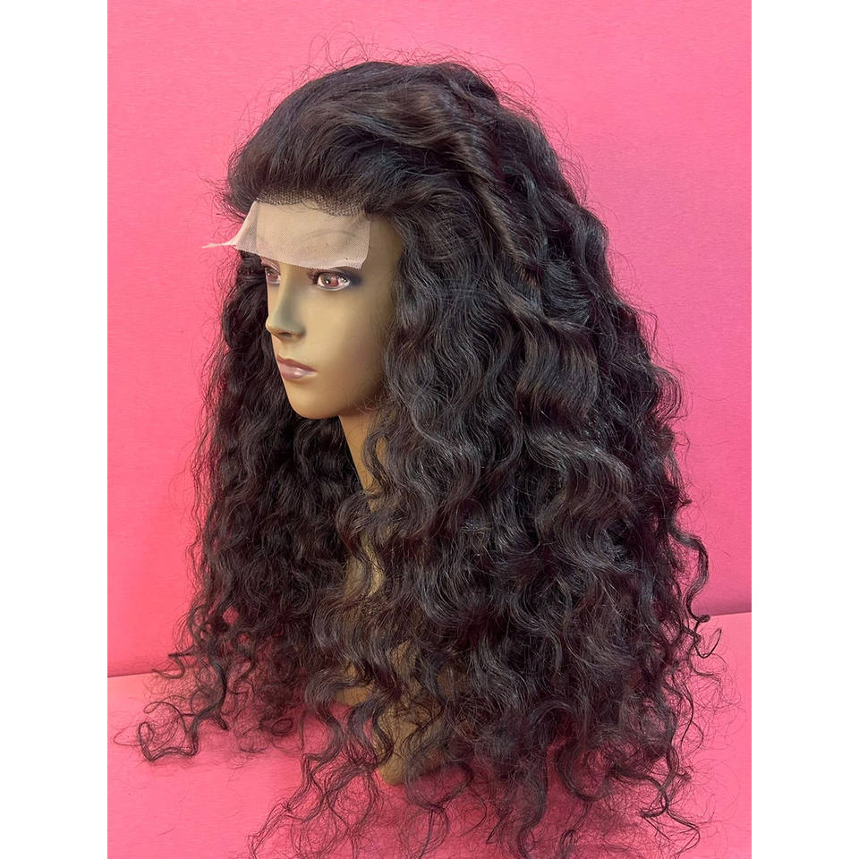 วิกผมแท้คุณภาพสูงจากวัดอินเดียใต้ แบบลอนลึกธรรมชาติ สำหรับติดกับฐานลูกไม้แบบใส ทนความร้อนได้ 100% ความหนาแน่น 180%