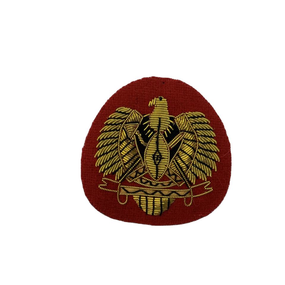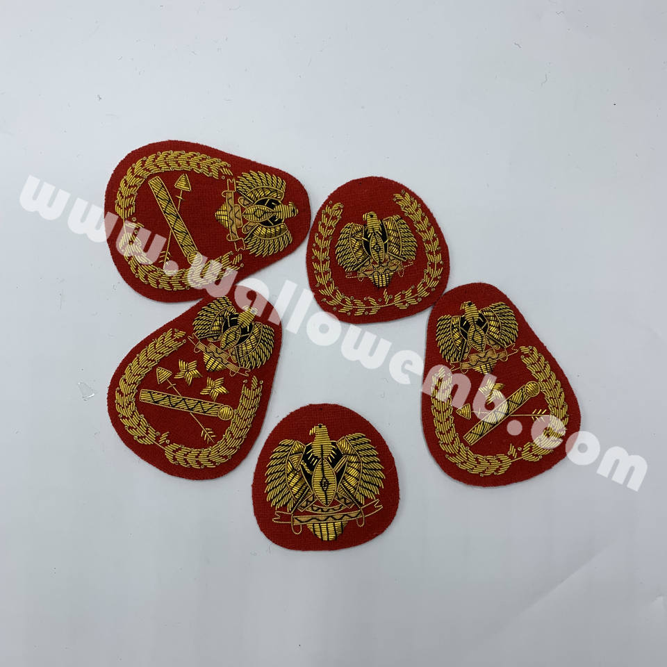 ตราเบเร่ต์คุณภาพสูงจากซูดานใต้ตราเบเร่ต์ตามสั่งชุดยูนิฟอร์มตราสัญลักษณ์ปักด้วยเทคนิคการเย็บแบบสายทองแท่ง