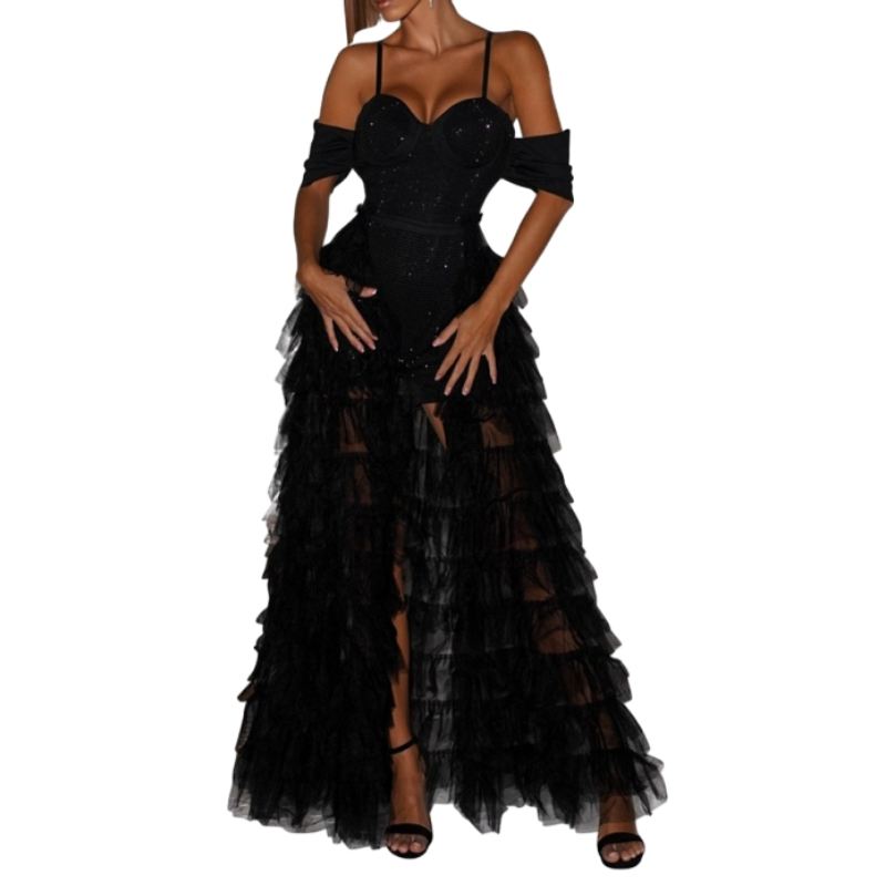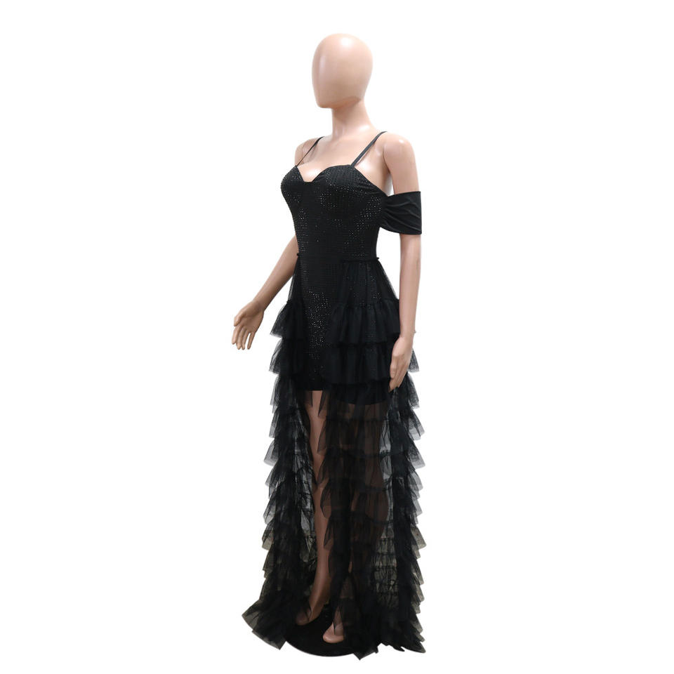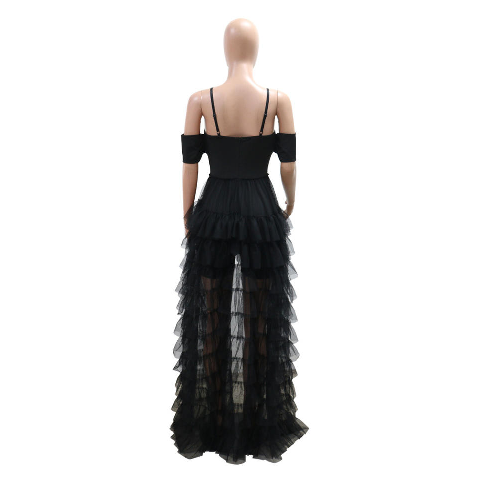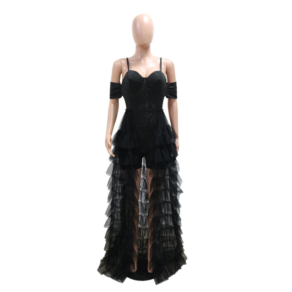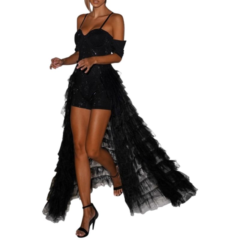 จั๊มสูทสั้นสายเดี่ยวคุณภาพสูง ดีไซน์เซ็กซี่ แต่งระบายชายผ้าตาข่าย สำหรับผู้หญิงแฟชั่น