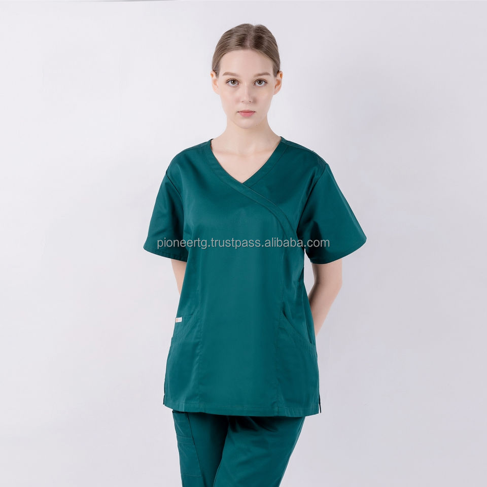 ชุดยูนิฟอร์มพยาบาลผ้าสแปนเด็กซ์ทวิลคุณภาพสูง ยี่ห้อ GW ลายพิมพ์สำหรับโรงพยาบาล ไซส์ XL แบบสั้น ยูนิเซ็กส์ สไตล์แพทย์