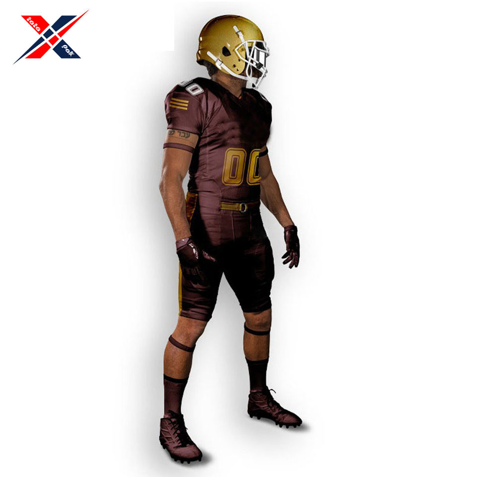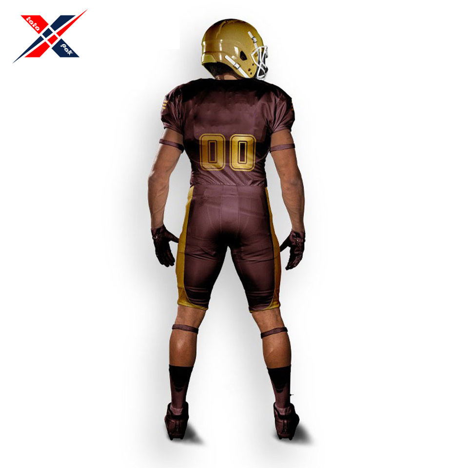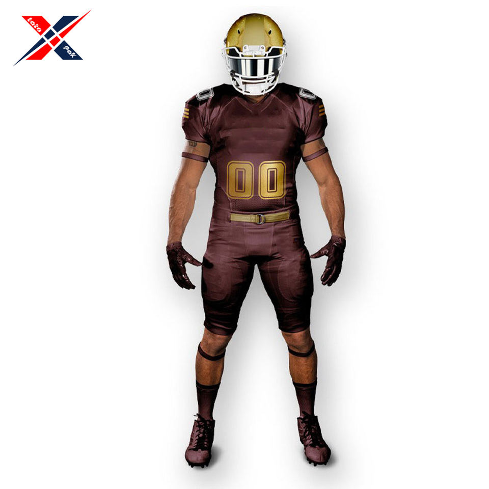 ชุดกีฬาอเมริกันฟุตบอลชุดสั้นพิมพ์ลายถ่ายเทความร้อนออกแบบโลโก้ตามสั่งระบายอากาศได้ดี100% โพลีเอสเตอร์