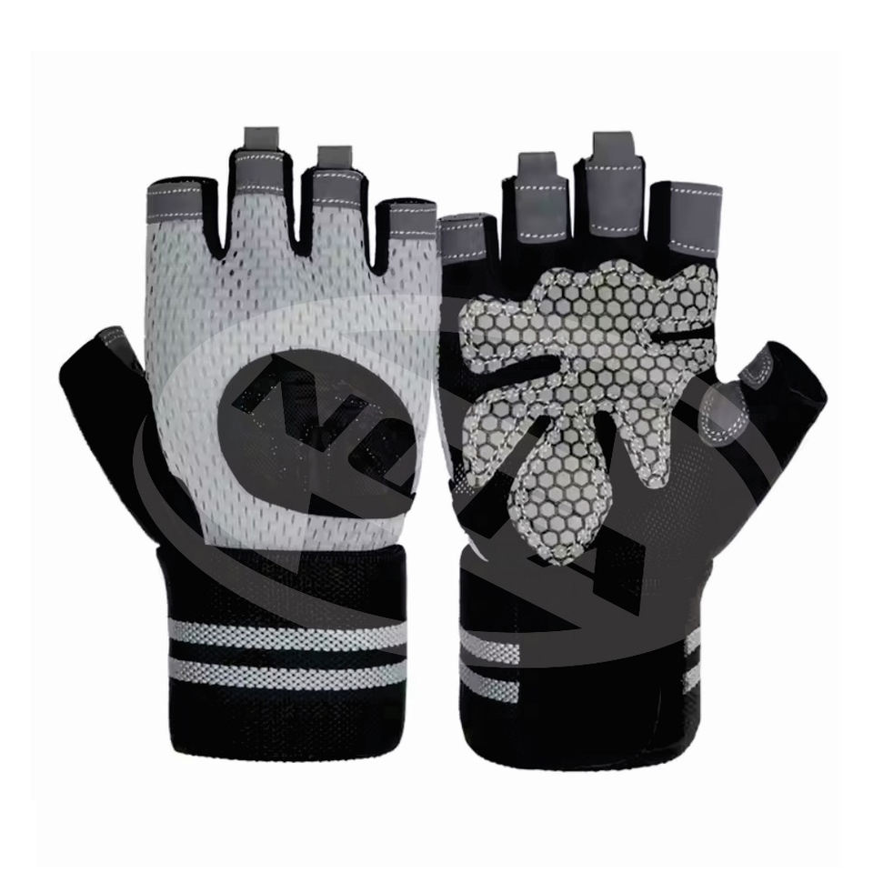 ถุงมือออกกำลังกายแบบหนังครึ่งนิ้วพร้อมสายรัดข้อมือสำหรับออกกำลังกายในยิม2024ฟิตเนสออกแบบได้ตามต้องการ