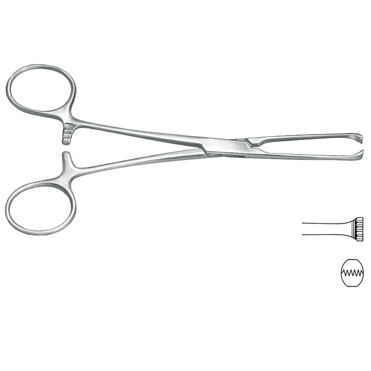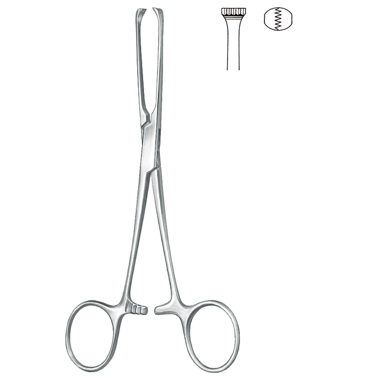 คีมหนีบเนื้อเยื่อลำไส้ allis สแตนเลสคุณภาพสูง5X6ฟัน25ซม./10 "ผู้ผลิตเครื่องมือผ่าตัด