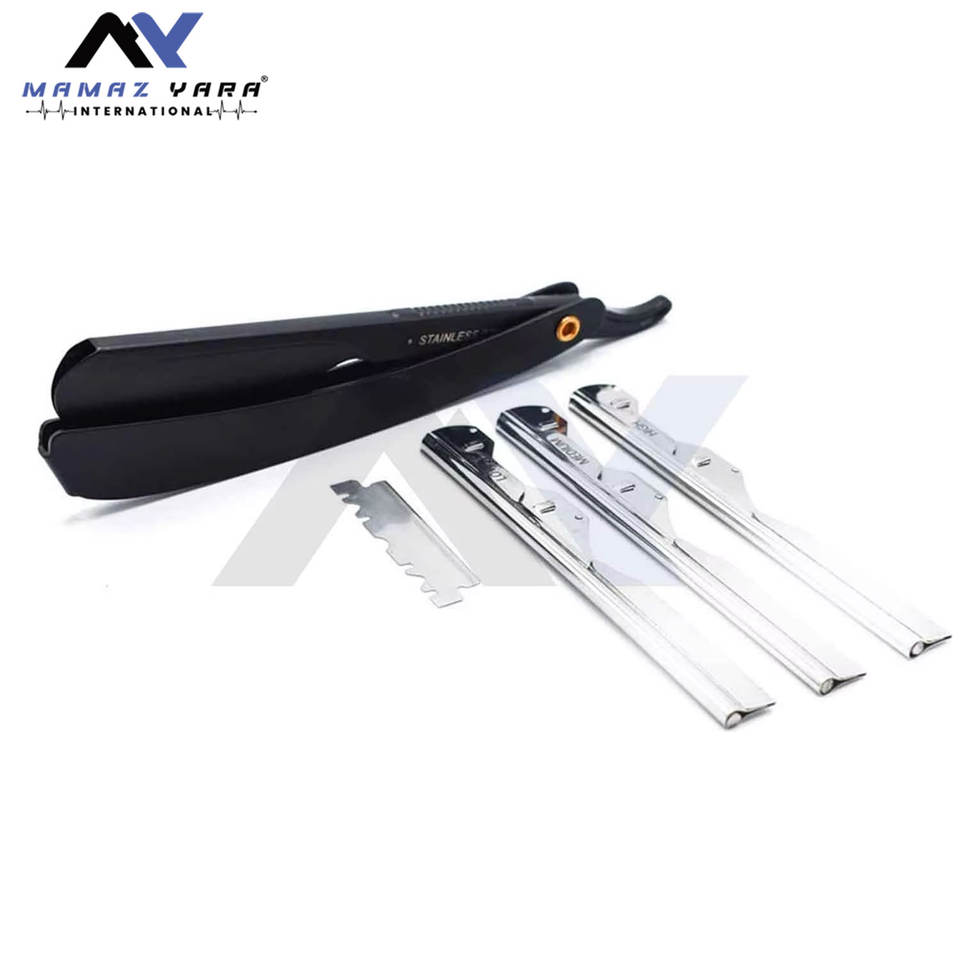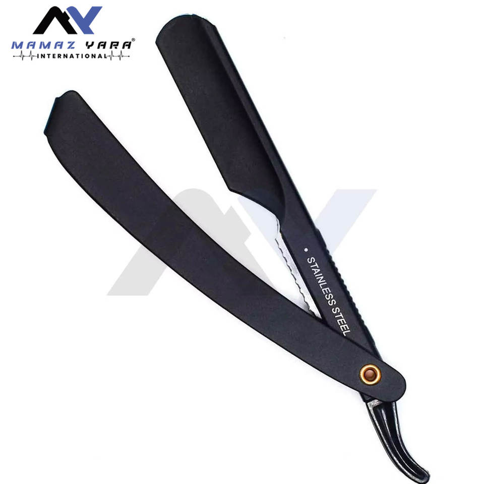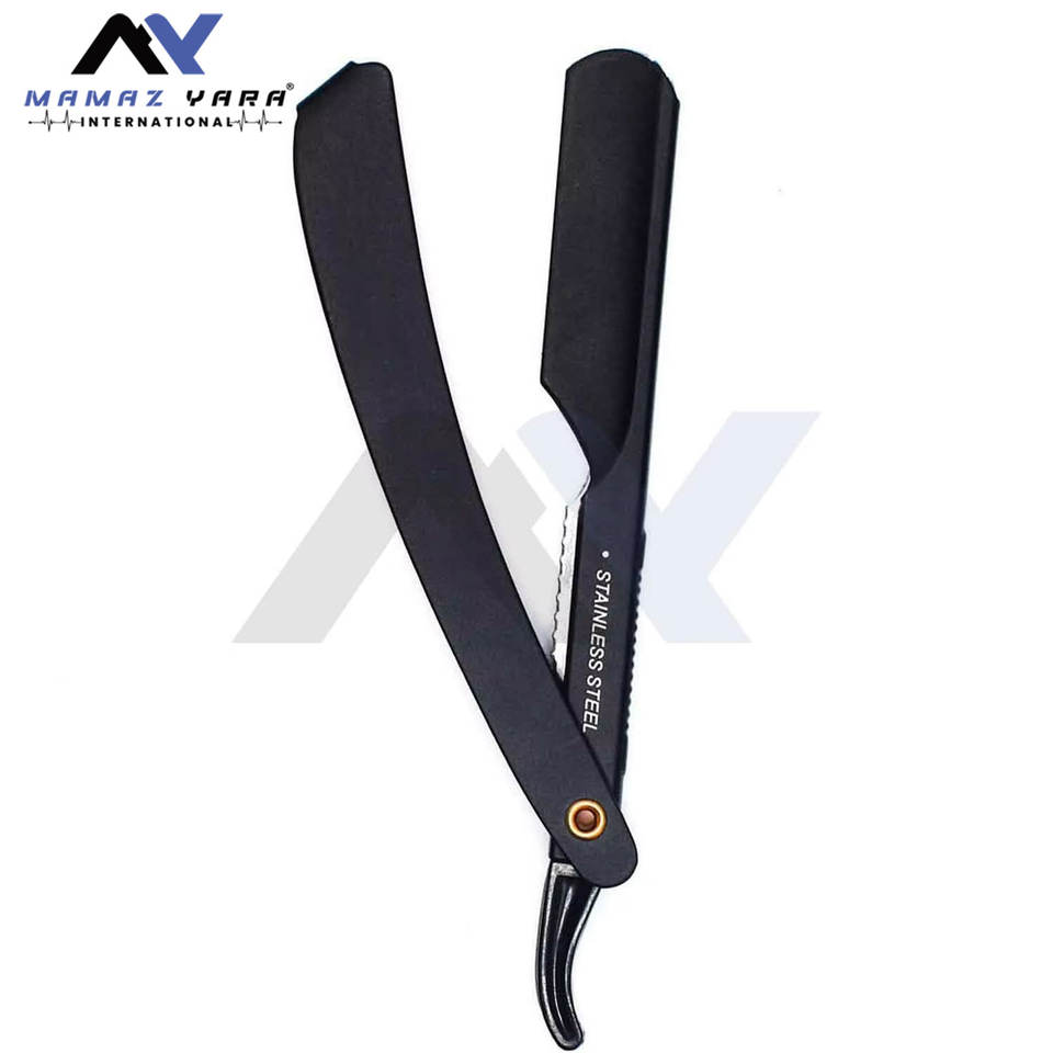 มีดโกนหนวดสแตนเลสคุณภาพสูงแบบอเมริกัน ขอบตรง สีดำด้าน พับได้