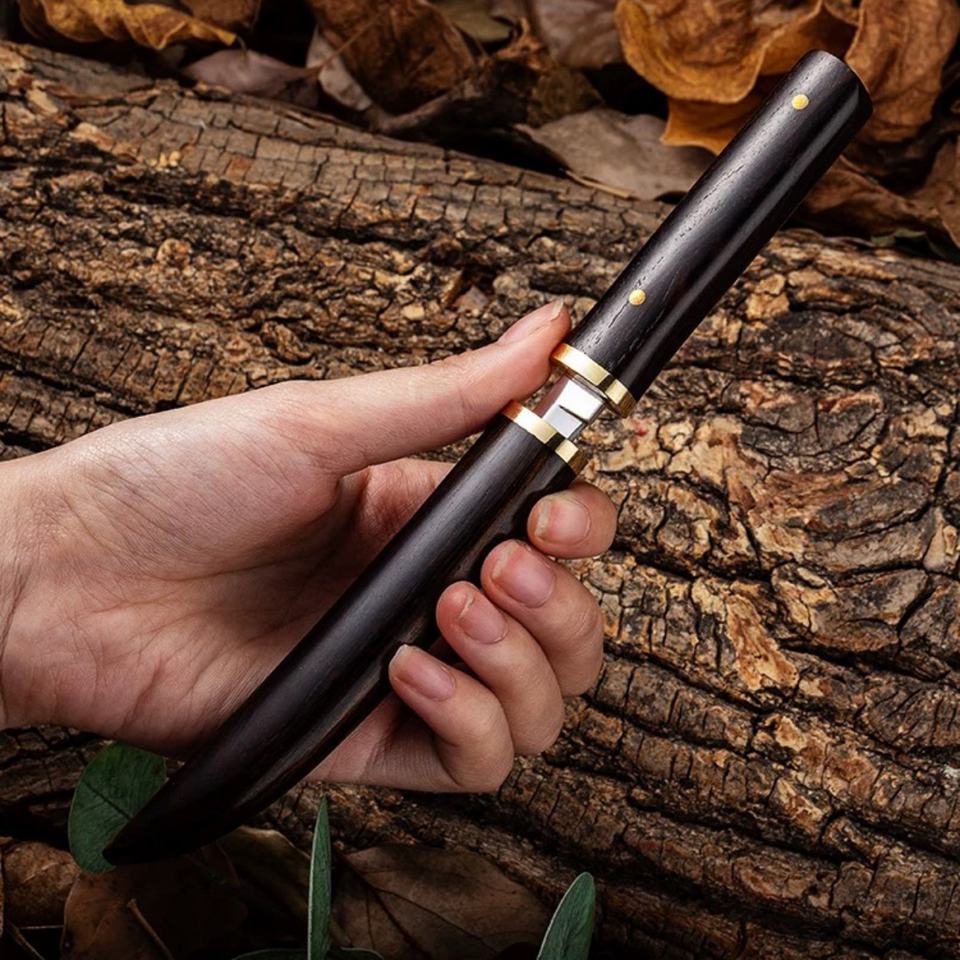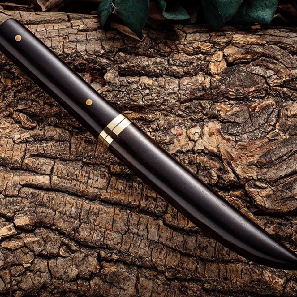 มีดวากิซาชิคุณภาพสูง ใบมีดสแตนเลส สำหรับต่อสู้ สีดำขนาดเล็ก พกพาสะดวก ปรับแต่งได้ตามต้องการ พร้อมปลอกไม้แบบ OEM สำหรับกิจกรรมกลางแจ้ง DIY