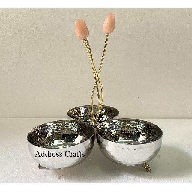 ชุดชามผลไม้ทำจากสเตนเลสขัดเงาและจุ่มสำหรับบ้านโรงแรมร้านอาหารงานเลี้ยงวันเกิดชามถั่ว