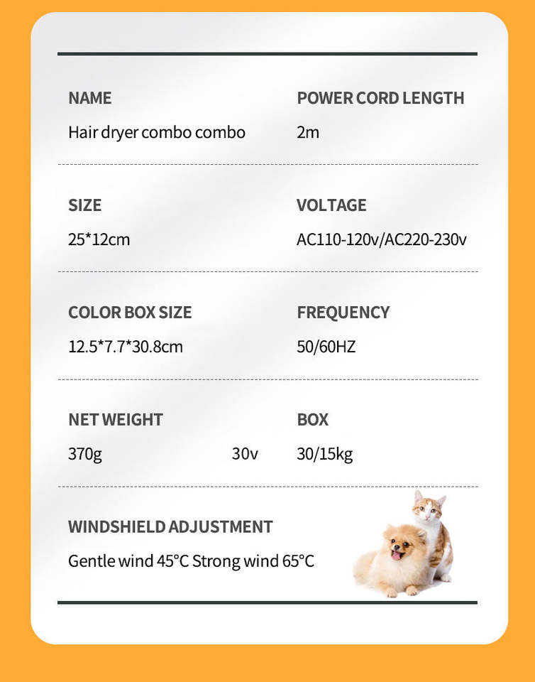 หวีสแตนเลสคุณภาพสูง เป็นมิตรกับสิ่งแวดล้อม สำหรับแมวและสุนัข 2 in 1 พร้อมไดร์เป่าขนสัตว์ไฟฟ้าและหวีเข็ม