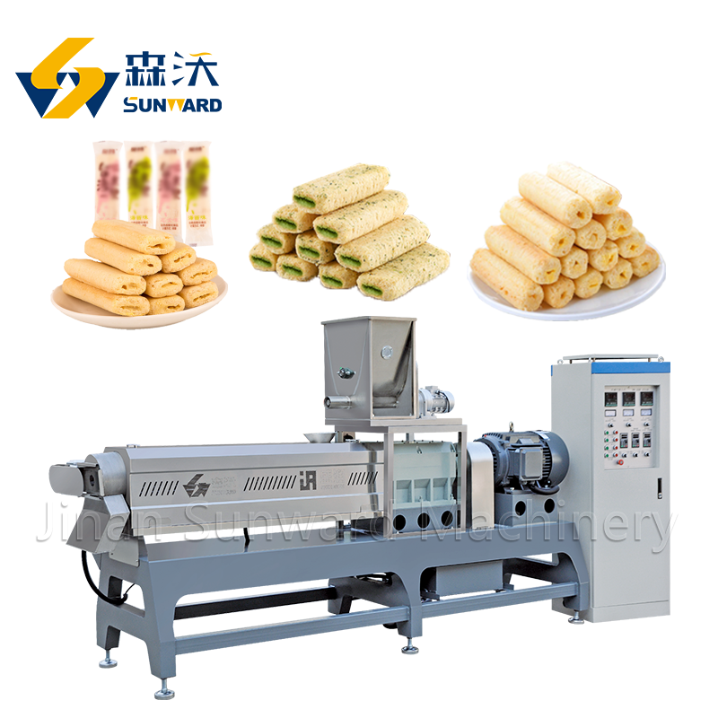 เครื่องอัดรีดขนมพัฟข้าวโพดทำจากสแตนเลสสายการผลิตกึ่งอัตโนมัติมอเตอร์สำหรับร้านอาหารขายปลีก