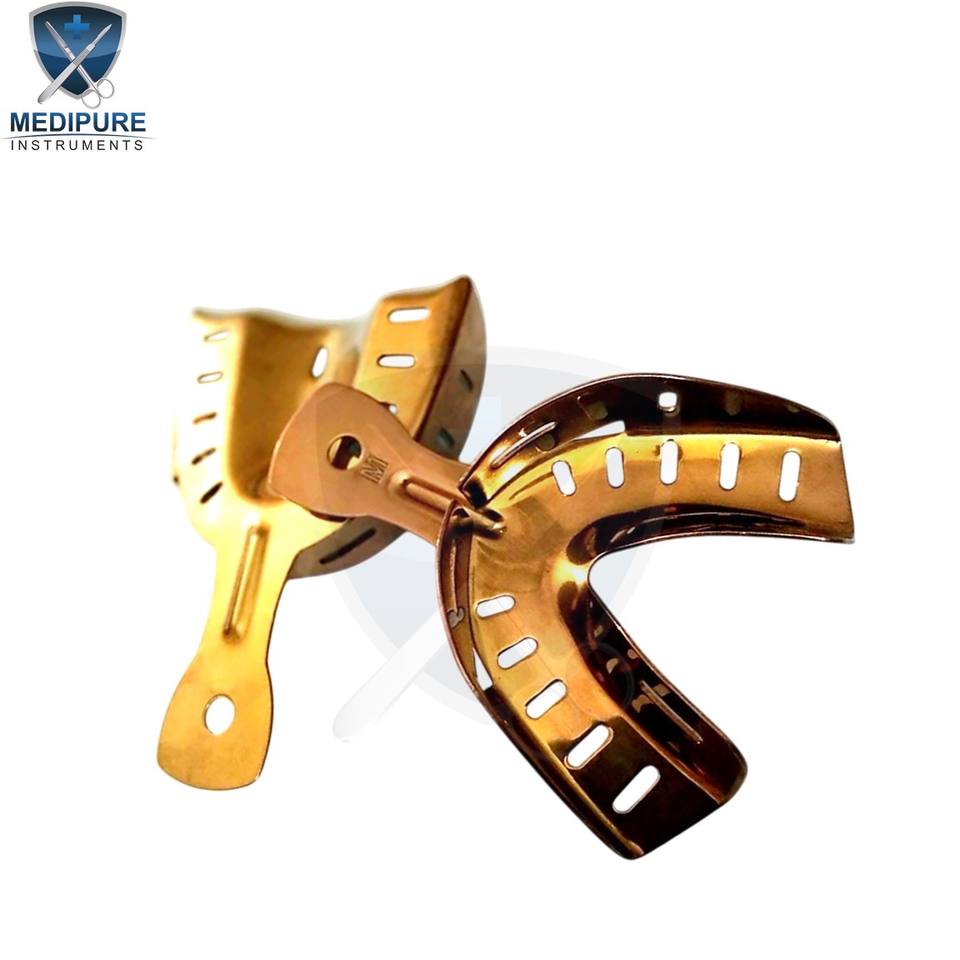 ชุดถาดพิมพ์ฟันทำจากสเตนเลสสตีลใช้ซ้ำได้เครื่องมือสร้างความประทับใจแบบมีรูสำหรับทันตแพทย์