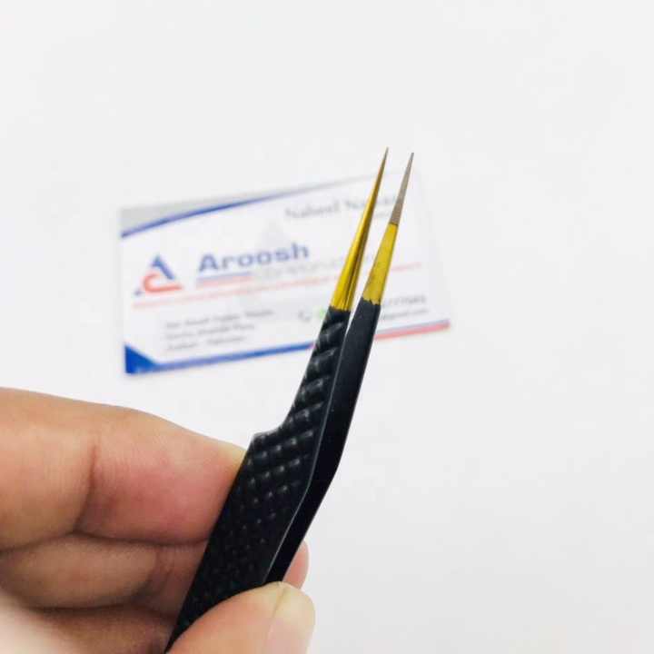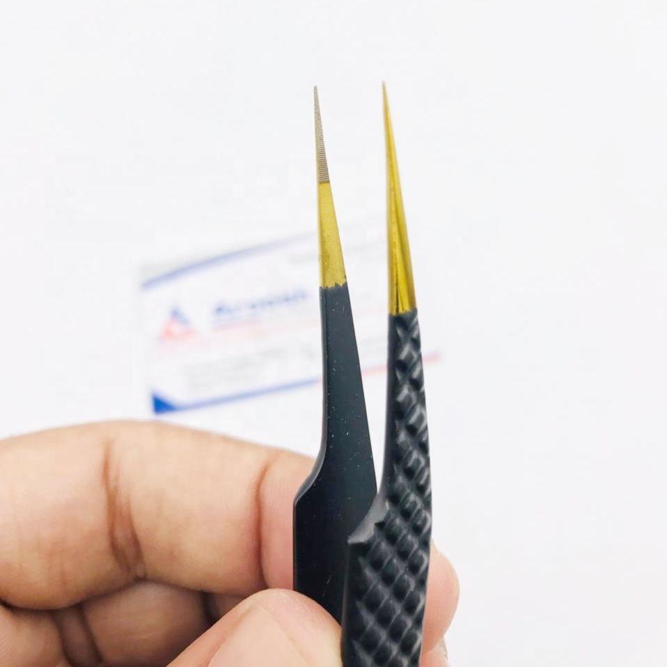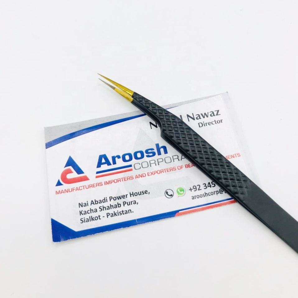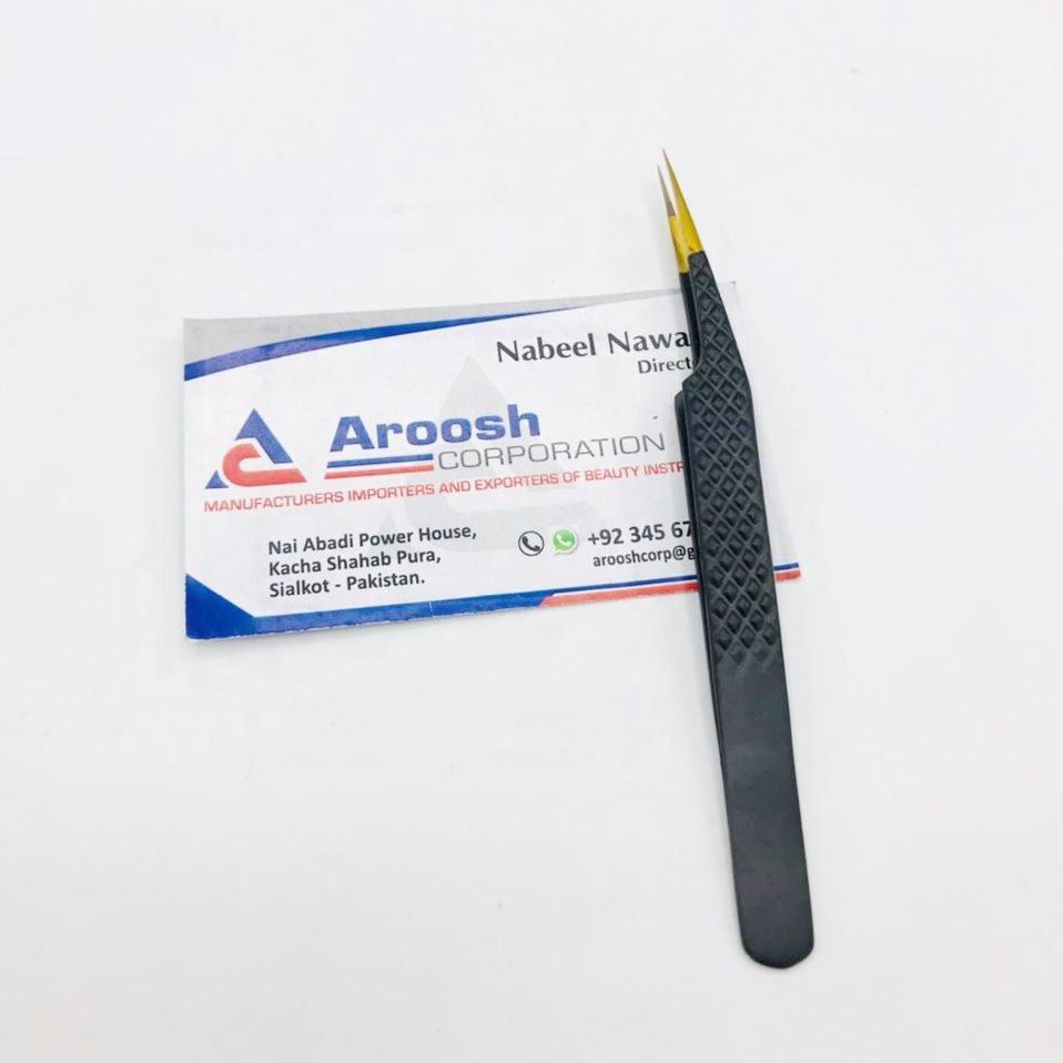 คีมหนีบขนตาปลอมสำหรับต่อขนตาแบบตรงทำจากสแตนเลสสตีลสีดำทองไฟเบอร์โปร