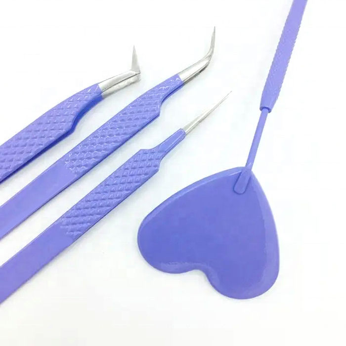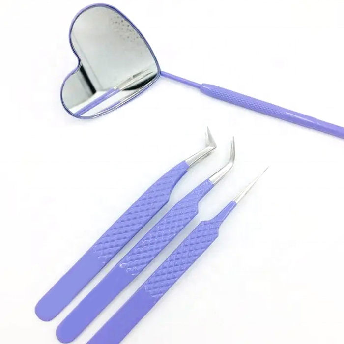 แหนบต่อขนตาสแตนเลสพร้อมด้ามจับเพชรเพื่อความแม่นยำและความสบายในการใช้งาน