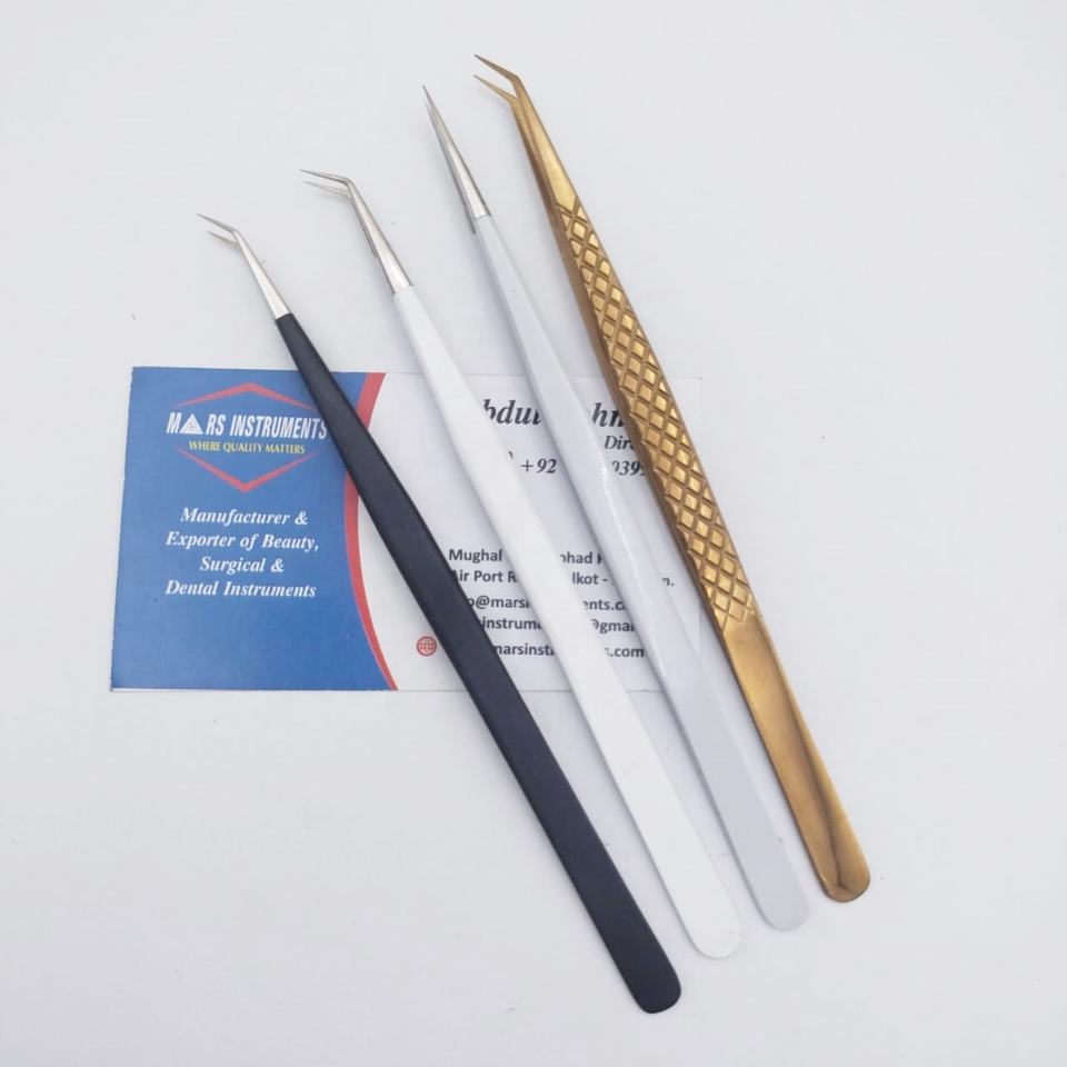 Professional High Quality Stainless Steel Eyelash Extension Tweezers 45 Degree Lash Tweezers with Sustainable Pointed Fiber Tip
